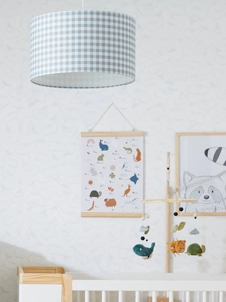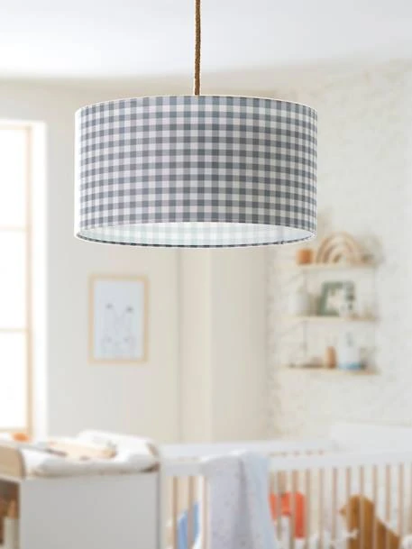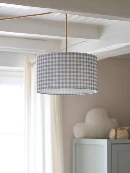 Motif intemporel, le vichy prend place tout en douceur sur ce bel abat-jour pour éclairer la chambre des enfants. Pour créer une jolie suspension, associez-le au câble avec douille en vente sur notre site !