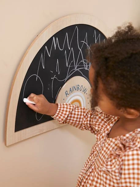 Une belle ardoise tendance “Happy” sur laquelle les enfants pourront écrire à la craie. Une forme arc-en-ciel originale, qui décore les murs avec style !