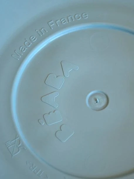 Ventouse sous les assiettes et le bol : pour adhérer à la table et limiter les incidents