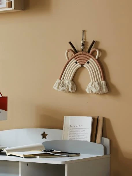 Déco murale Biche Arc-en-ciel en coton, perles en bois.