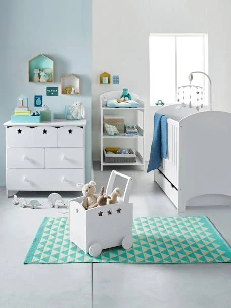 Véritable coup de oeur pour ce lit bébé aux lignes sobres et élégantes ! Les petites étoiles incrustées ajoutent au charme et veillent tendrement sur le sommeil de bébé. Le sommier de ce lit est inclus !