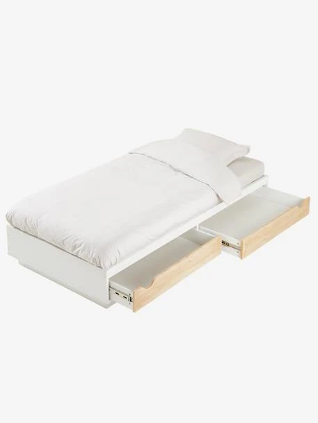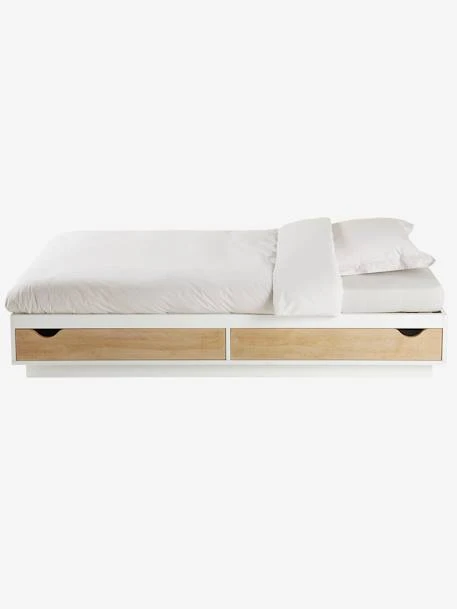 Lit Plateforme Enfant Avec Tiroirs LIGNE SCHOOL Blanc / Bois – Vertbaudet