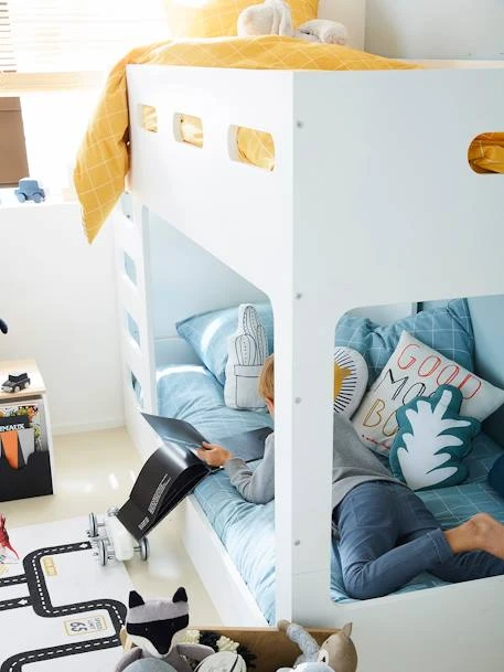 Un lit superposé au design étudié, qui présente la solution idéale si vous voulez gagner de la place dans la chambre d’enfant et si vous préférez des couchages à une hauteur relativement basse. A partager avec les frères et soeurs ou les copains, le lit superposé est le lit chouchou des enfants. On vous parie que notre joli lit Fuji sera très vite adopté ! Livré avec sommiers.