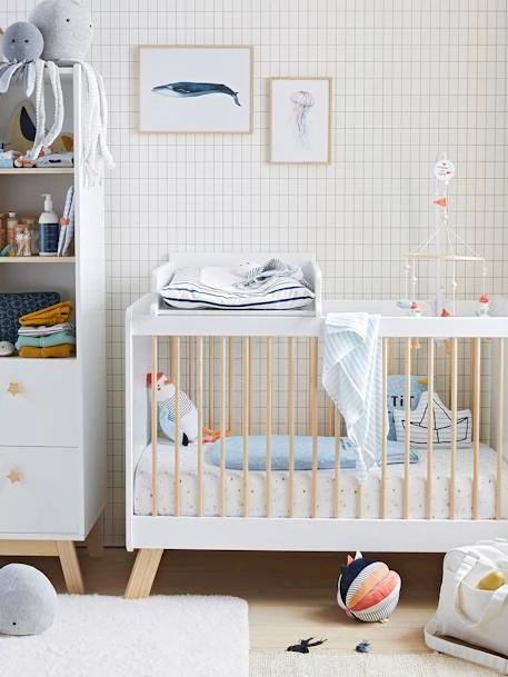 Un plan à langer gain de place en pin massif bien solide, compatible avec la majorité de nos lits bébé.