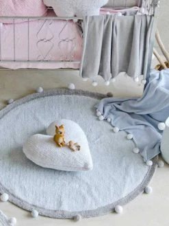 Tapis Coton Lavable Rond Avec Pompons LORENA CANALS Bleu Grisé – Lorena Canals