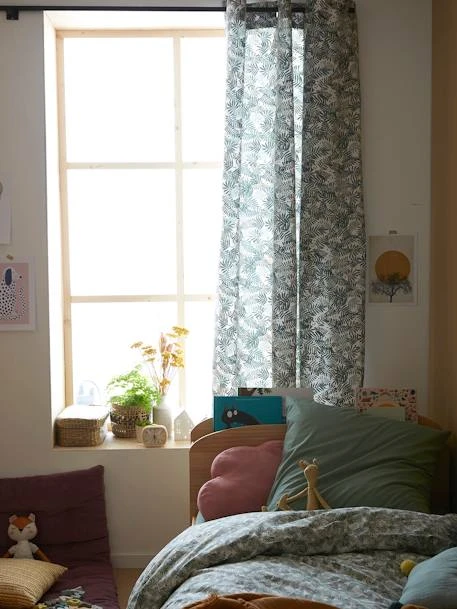 Avec ce rideau qui laisse partiellement entrer la lumière, les enfants voyagent sans quitter la maison ! On adore les feuillages très tendance qui transforment la pièce en une véritable jungle
