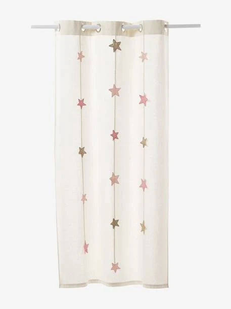 Ce rideau en toile bâchette de qualité habille joliment la fenêtre et offre au regard de belles guirlandes d’étoiles.