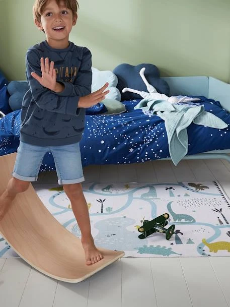 Avec ce fantastique tapis, les enfants pourront suivre les traces des dinosaures et inventer de belles aventures ! Un tapis aussi déco qu’amusant, qui égaye la chambre de ses jolies couleurs.